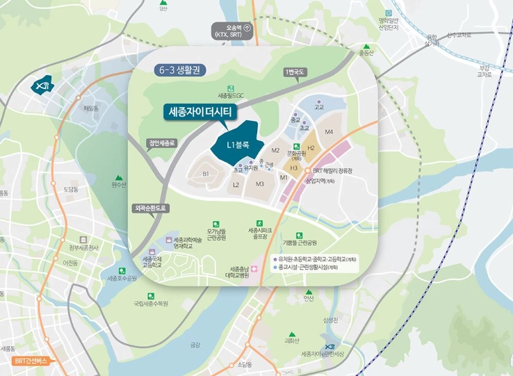 - 위치: 세종 산울동 6-3생활권, 중심상업지·BRT 접근성 우수