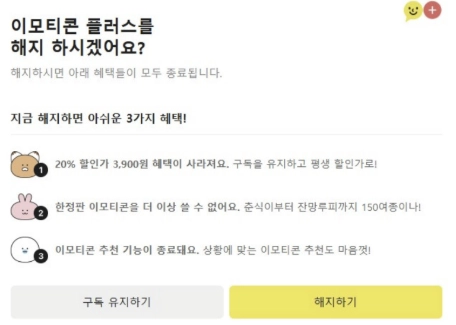| 남는 혜택 | 일부 다운로드 이모티콘 유지, 구독 혜택 소멸 |