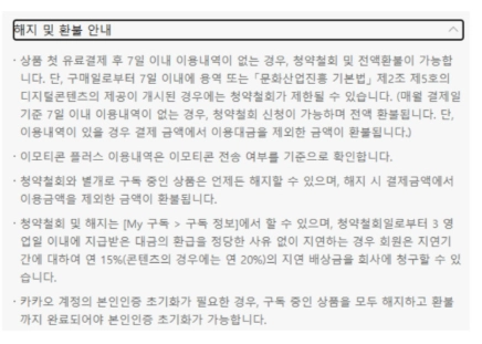구독 서비스의 특성상 단순 변심으로 인한 환불은 불가능한 경우가 많습니다. 다만 시스템 오류나 중복 결제 등 특별한 사유가 있을 때는 환불이 가능합니다. 이때 카카오 고객센터뿐만 아니라 앱스토어나 구글플레이 고객센터를 통해 환불 절차를 진행해야 할 수 있습니다. 환불 요청 시 결제 내역 캡처, 오류 발생 상황 등을 함께 제출하면 처리가 원활하게 진행됩니다.