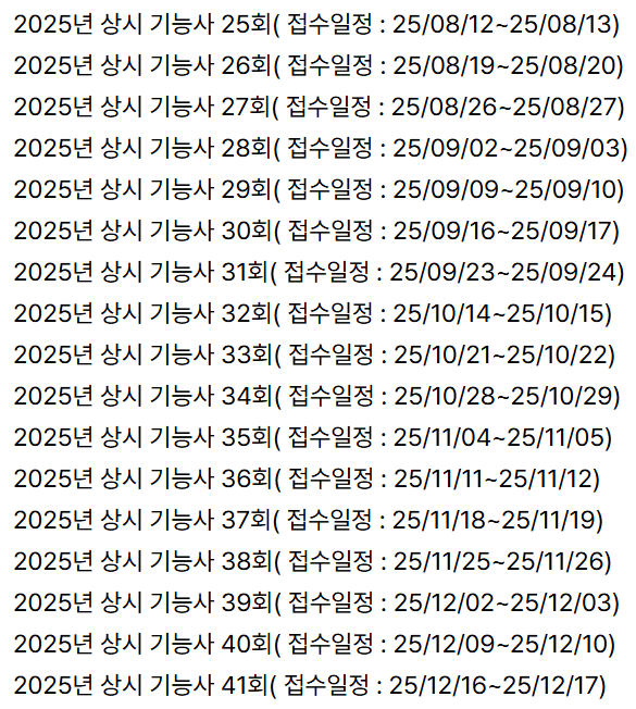 - 2025년 1월부터 12월까지 매월 2~4회의 필기시험이 예정되어 있습니다.