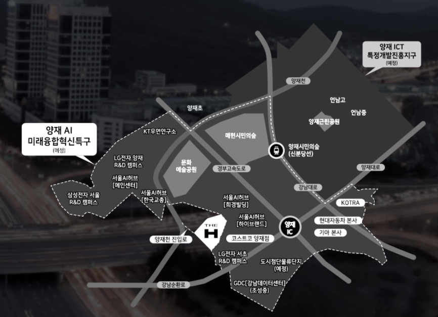 - 직주근접 프리미엄: LG·삼성전자 R&D 센터, 현대·기아차 본사, KT 연구소 등 대규모 기업 클러스터와 인접 → 출퇴근 시간 절약과 프리미엄 배후수요 확보.